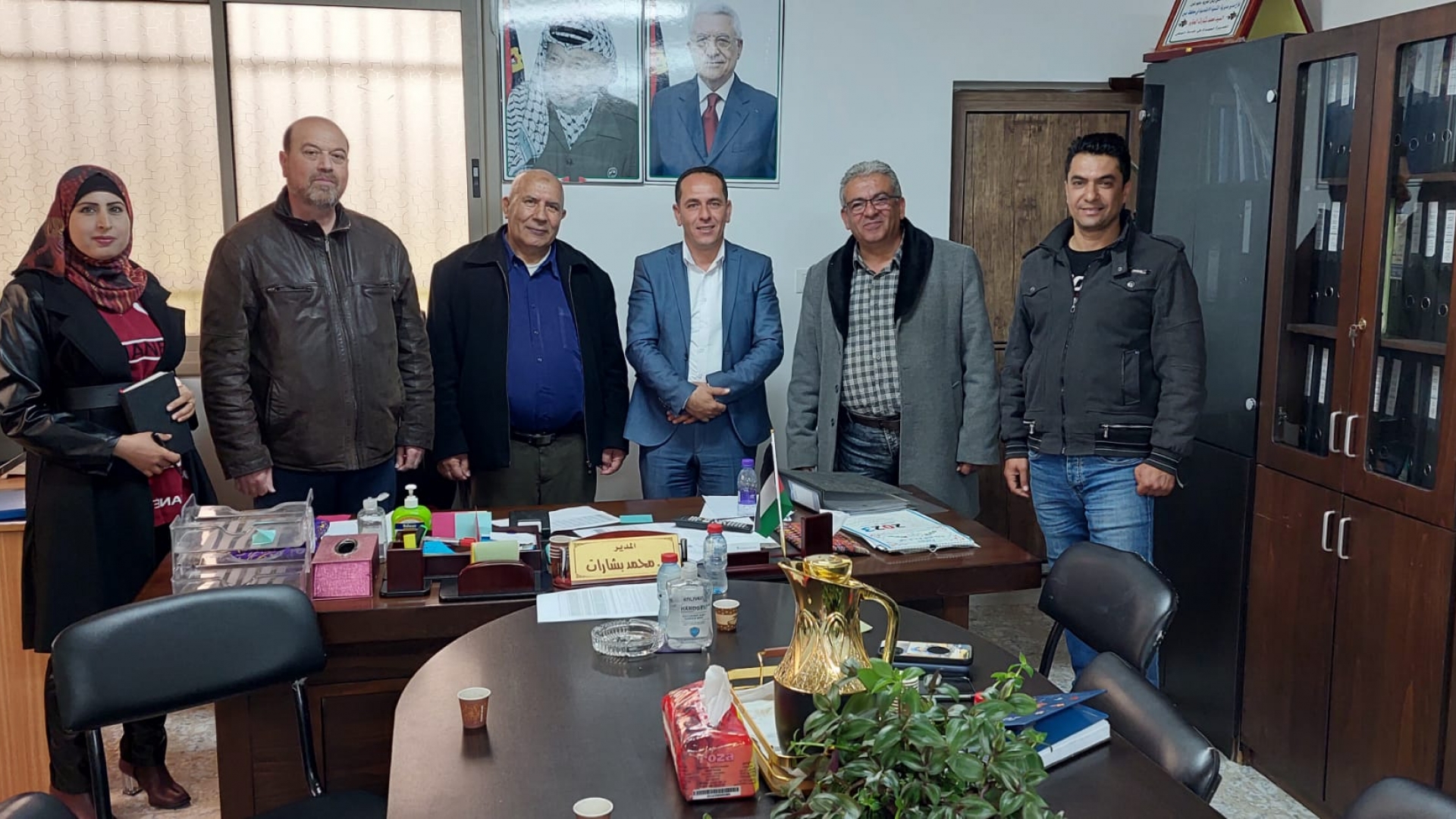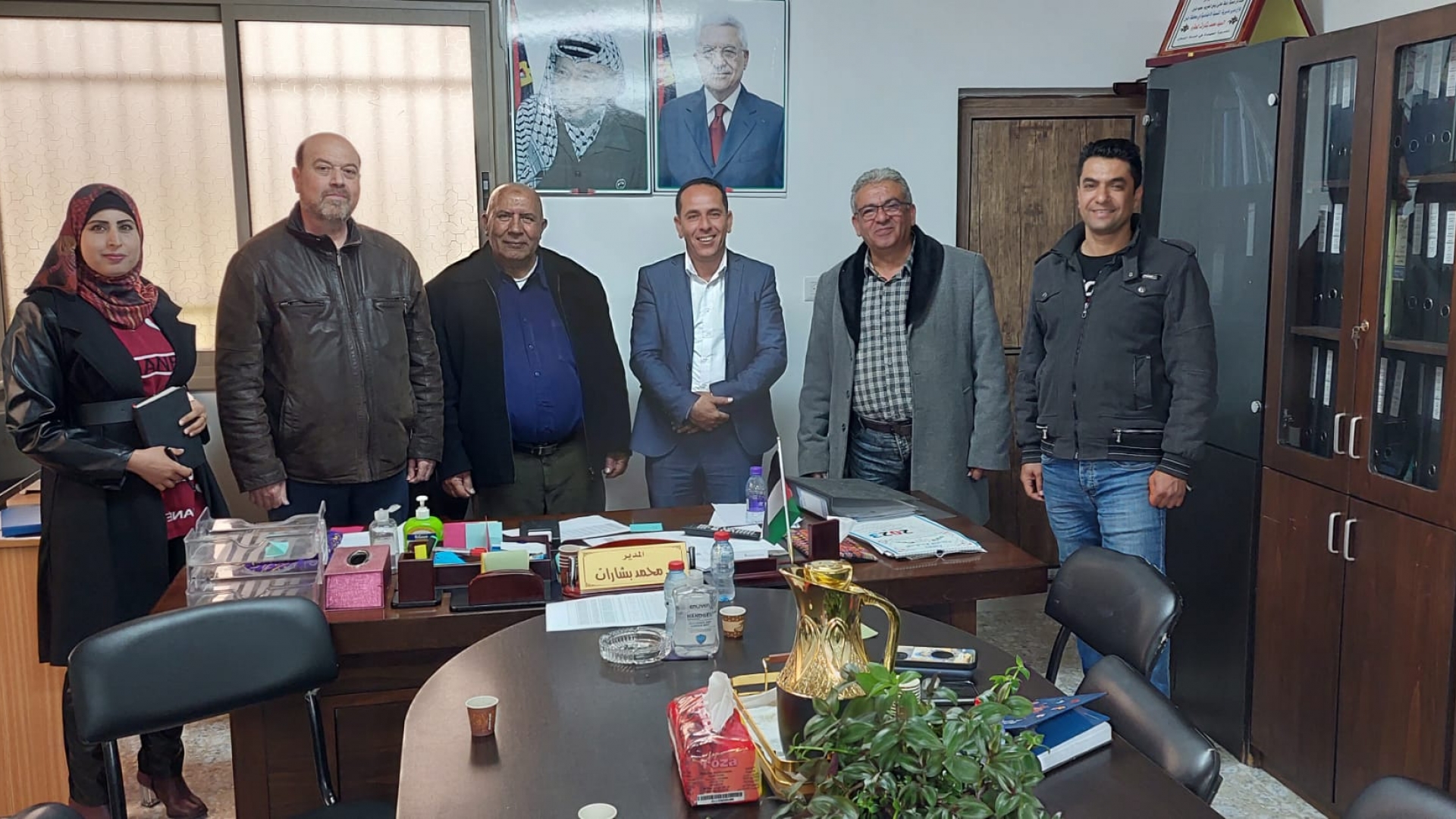 لقاء تنسيقي بين وفد الداخل الذي ضم كل من د. محمود سعيد والسيد أبو إبراهيم دراوشة وبين السيد محمد بشارات مدير مكتب التنمية الاجتماعية في جنين والسيد علي السمودي الاعلامي من جمعية حق - دعم أسر