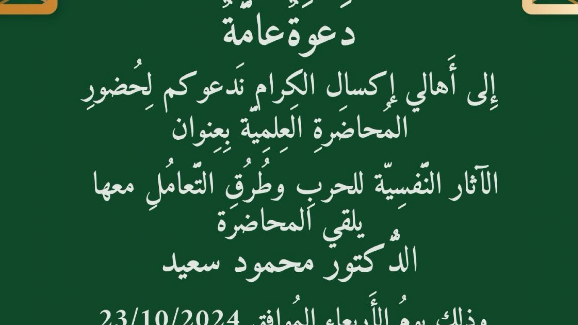 الآثار النفسية للحرب محاضرة للدكتور محمود سعيد - بإدارة وتنظيم الشيخ محمود العمري ولجنة مسجد ابو بكر في بلدة اكسال - 23 - 10 - 2024